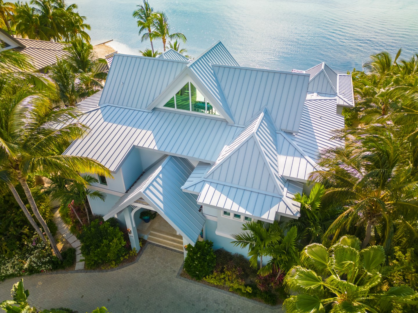 This home has been specifically designed to include every possible element to enhance a large group visit comfortably and luxuriously. Sun Serenity is approximately 7800 overall square feet and consists of five beautifully appointed ensuite King size Master Bedrooms – one of which is located on the ground floor for ease of access/mobility and four of which are positioned directly oceanfront – including two spectacular Pavilion Suites with vaulted ceilings that are each surrounded on three sides by glass to highlight the inspiring 180 degree views .. PLUS an adorable children’s suite with charming custom built single headboard upper bunks and 2 lower double bed combos to comfortably accommodate the little ones in the family which includes a gaming station, a comfy hidden iPad window seat nook and a friendly glow-in-the-dark shark that “Eats bad dreams”… As is critical when designing a home that is specially crafted to be enjoyed by large groups, not a single one of the six bedrooms at Sun Serenity shares a wall with any other bedroom in order to maximize privacy and noise abatement.